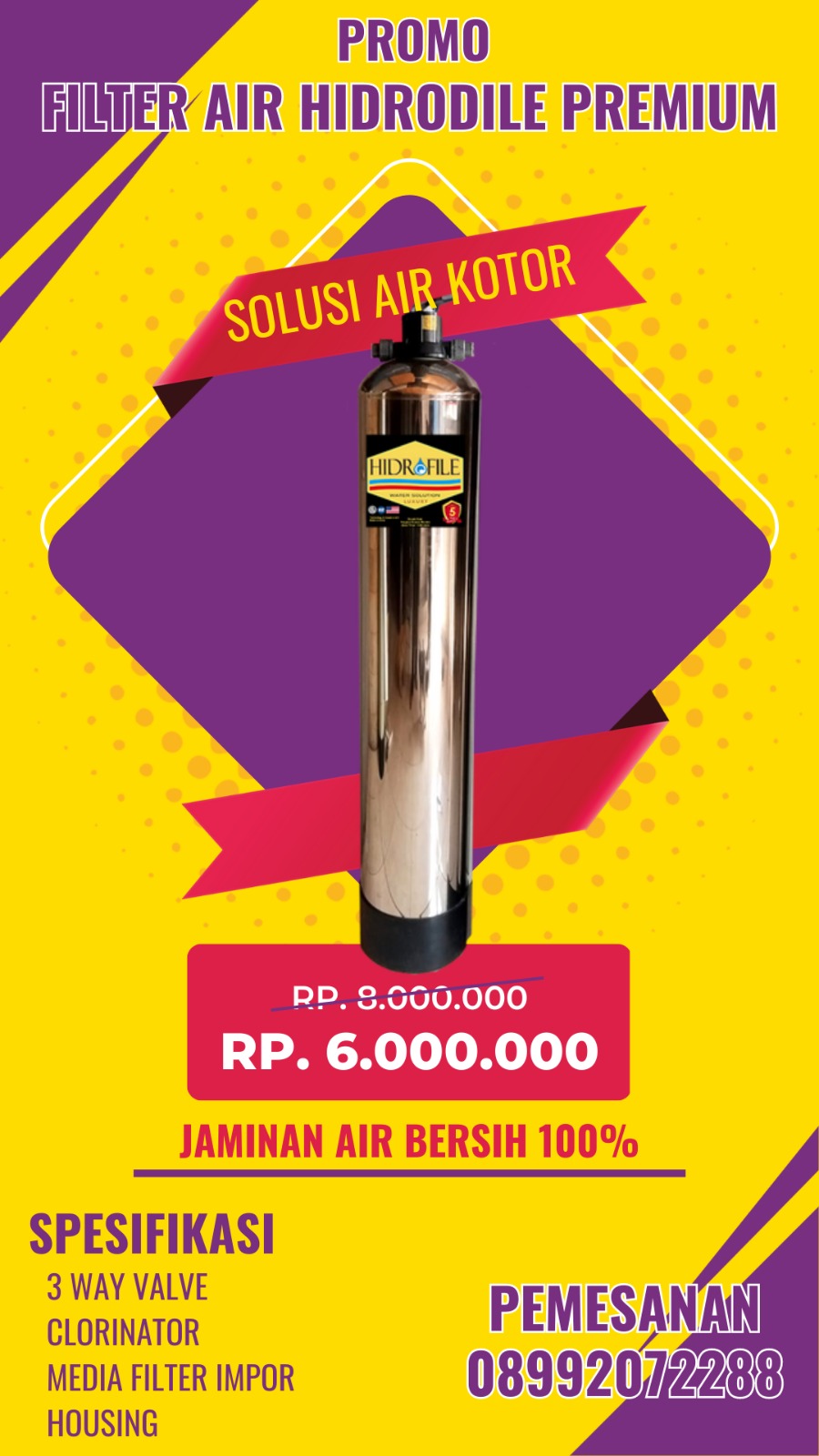 FILTER HIDROFILE PREMIUM AUTOMATIC PENJERNIH, PENGHILANG BAU PADA AIR SUMUR DAN BOR